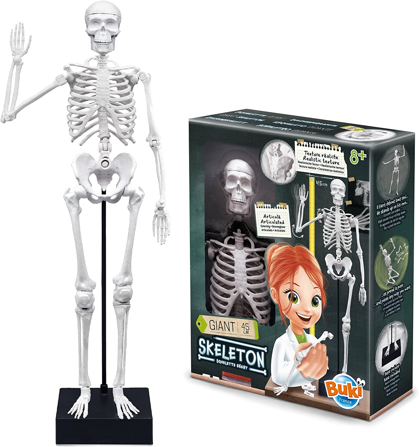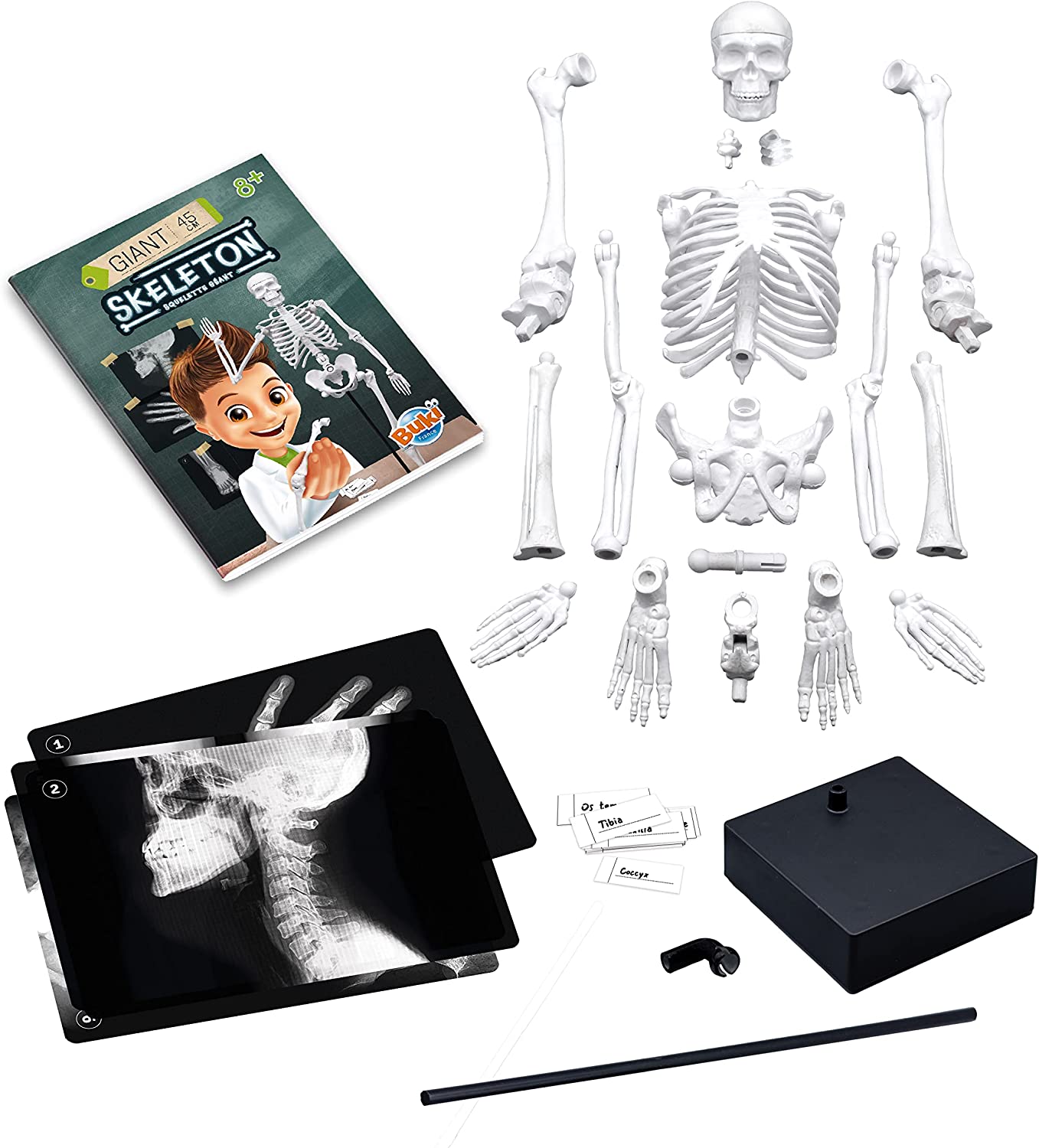 Detská experimentálna súprava obsahuje približne 45 cm vysoký model ľudskej kostry s príslušenstvom (podstavec, štítky na označenie jednotlivých kostí, röntgenové snímky).