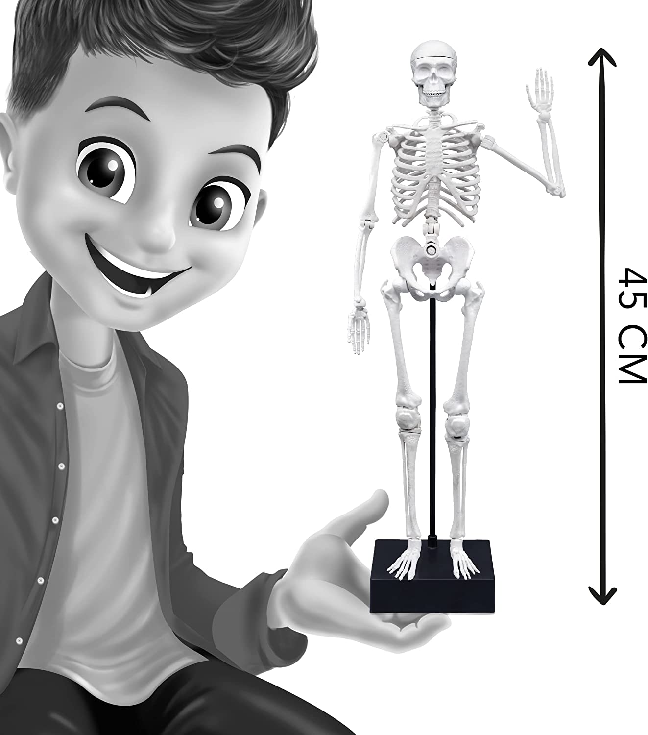 Kosti majú realistickú štruktúru a farbu. Kostra je plne kĺbová a dieťa si ju môže nastaviť do akejkoľvek polohy.