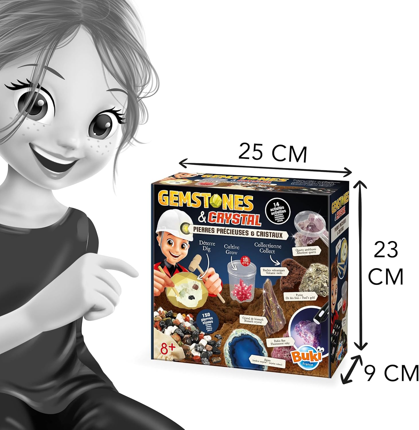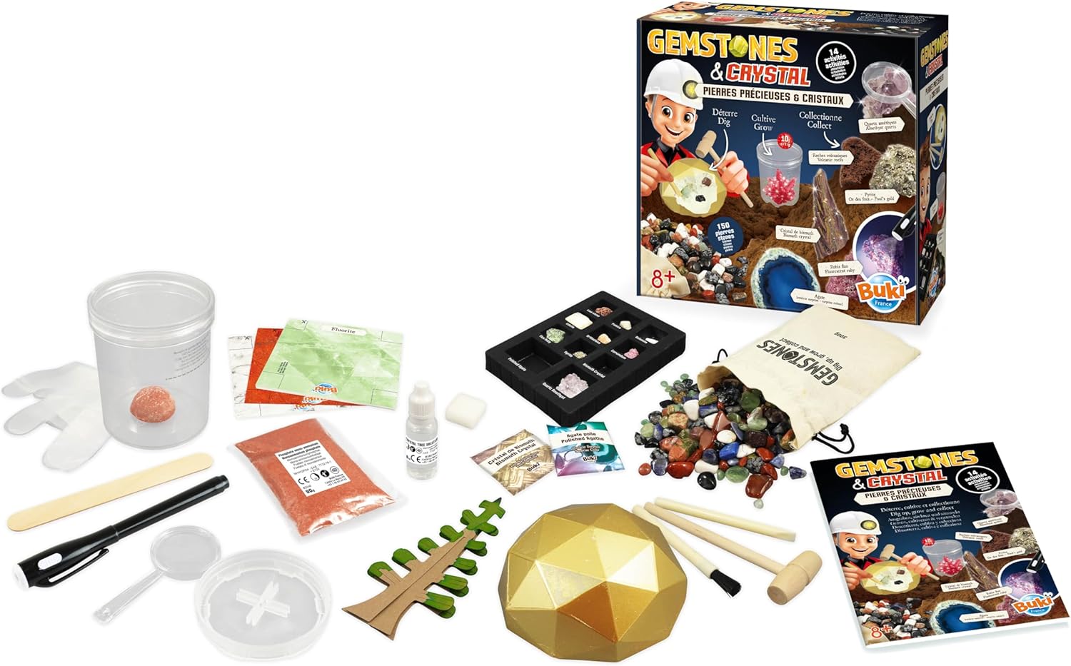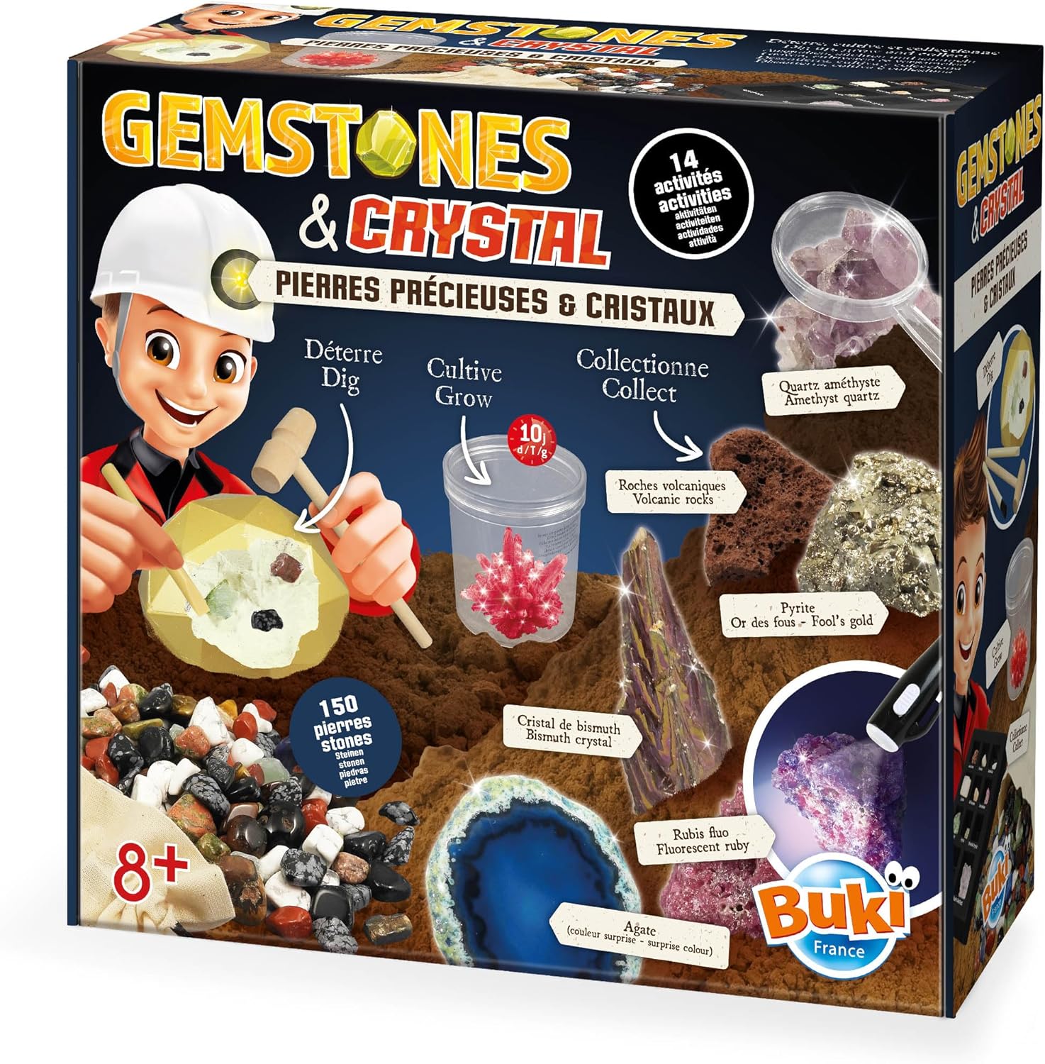 Drahokamy a kryštály od Buki France! Tento zábavný a poučný set umožní deťom skúmať skutočné kamene, vykopať vlastné surové kúsky, porovnať ich s brúsenými vzorkami a dokonca „pestovať“ veľké kryštály. Je to ideálny darček pre malého geológa, kombinuje hru, experiment a učenie.