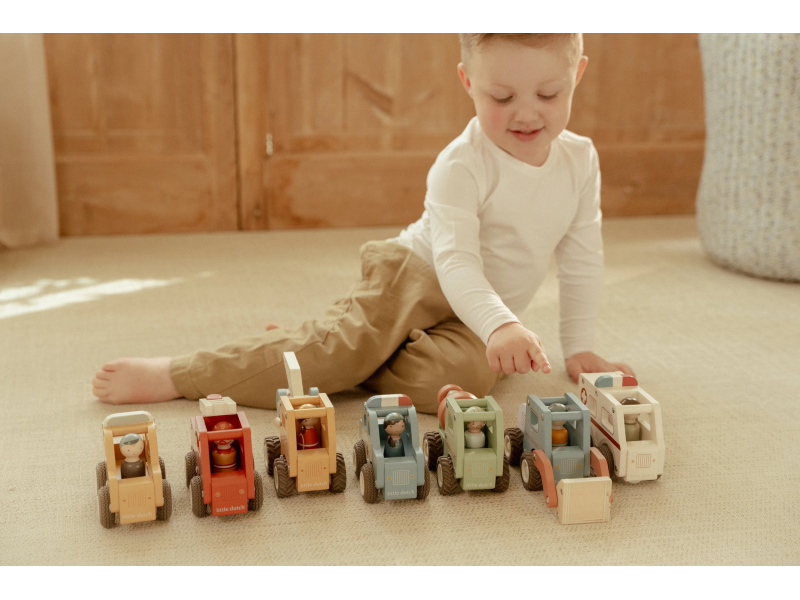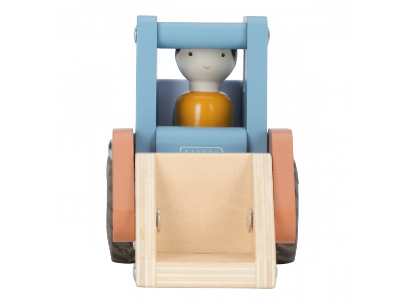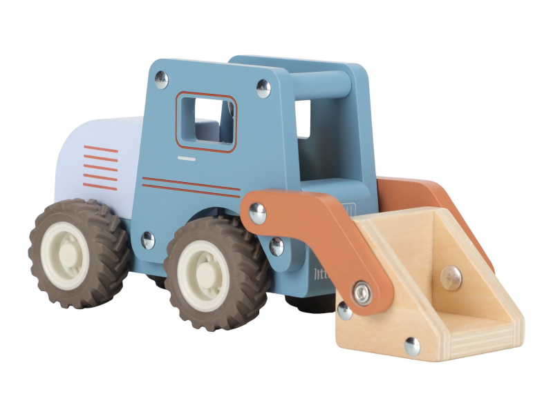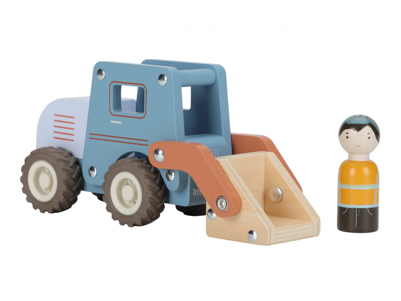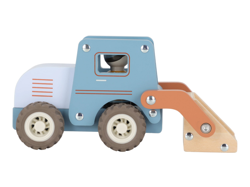 Na stavbe je vždy čo robiť! S týmto pevným dreveným nakladačom zvládnete ľahko nabrať a prepraviť všetko, čo je potrebné. Veľká pohyblivá lyžica je ideálna na zdvíhanie a presúvanie materiálu, zatiaľ čo gumové pneumatiky zaisťujú hladký pohyb po akomkoľvek povrchu. Súčasťou hračky je drevená figúrka stavbára, ktorá rozširuje možnosti hry a podporuje predstavivosť. Nakladač môžete kombinovať s ďalšími stavebnými vozidlami – napríklad s autožeriavom, miešačkou alebo sklápačkou – pre kompletné stavebné dobrodružstvo.