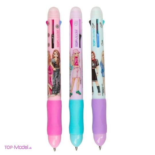Napíšte, zmažte a znovu prepíšte! Top Model vymazateľné pero so 4 tuhami – ružová, čierna, tyrkysová a modrá, v troch farbách s motívmi modeliek.