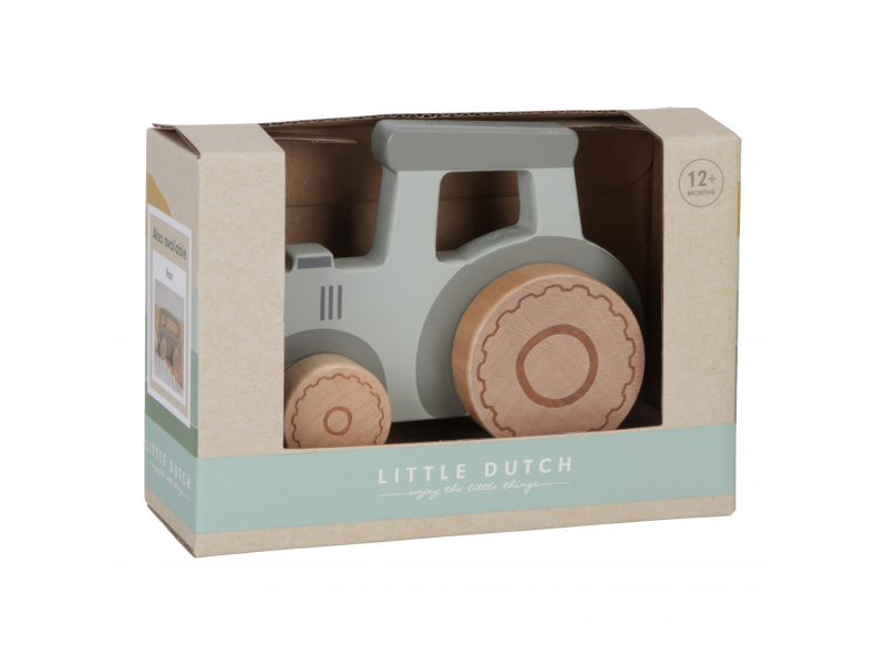 Drevený odolný traktor od Little Dutch má ergonomický tvar a môže sa tak stať prvým obľúbeným dopravným prostriedkom vášho dieťaťa. Traktor slúži aj ako krásna dekorácia v detskej izbe. Hračka je súčasťou dizajnovej kolekcie hračiek a doplnkov Little Dutch Farma.