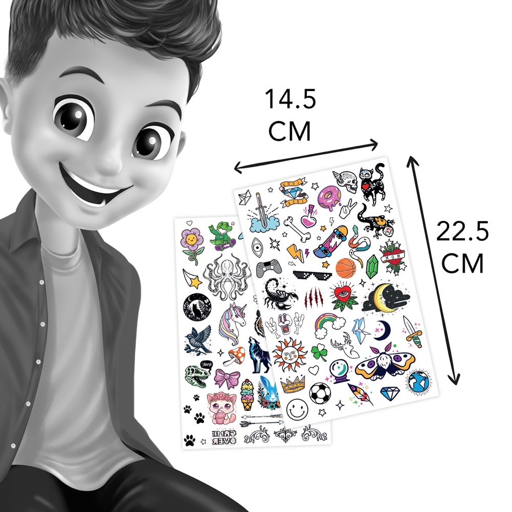 BeTeens Dočasné tetovanie fosforeskujúce Buki France! Ozdobte svoju pokožku dočasným tetovaním, ktoré žiari v tme! Stačí ho cez deň vystaviť svetlu a po zotmení sa krásne rozžiari. Perfektné pre deti aj dospelých, ktorí chcú zažiariť na párty, výlete alebo inej špeciálnej príležitosti. Toto dočasné tetovanie je odolnejšie a trvácnejšie, vydrží niekoľko dní bez straty intenzity. Ideálne na festivaly, dovolenky, tematické oslavy alebo karnevaly. jednoduchá aplikácia a odstránenie.