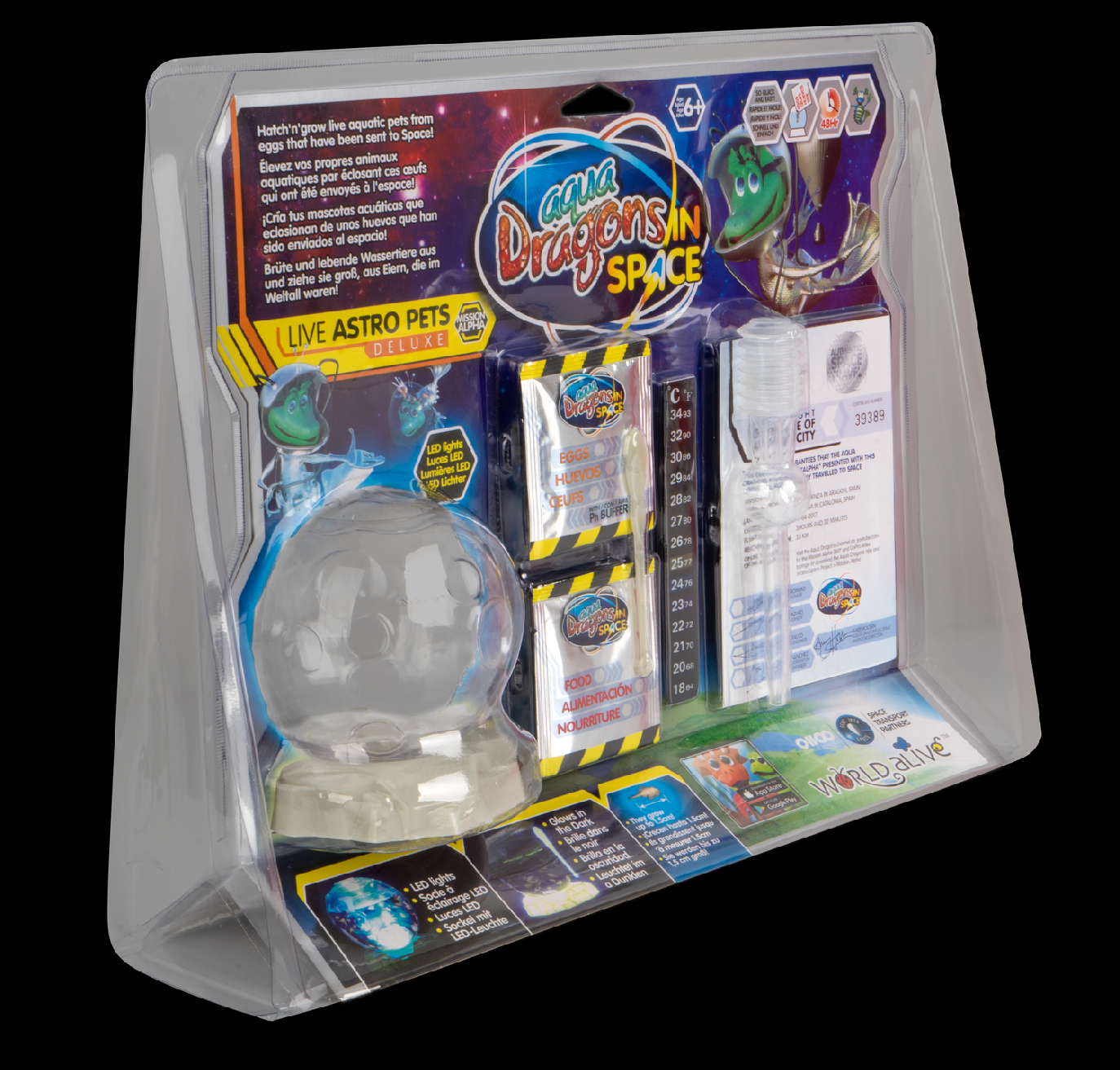 Vodné dráčiky návštevníci vesmíru edícia Deluxe od Aqua Dragons! Vypestujte si vlastných Vodných dráčikov – jediné živé zvieratká, ktoré skutočne cestovali do vesmíru. Táto Deluxe edícia prináša vylepšenú nádrž s LED osvetlením, bublinkovým systémom pre okysličenie vody a teplomerom na monitorovanie podmienok pre váš malý vesmírny ekosystém.