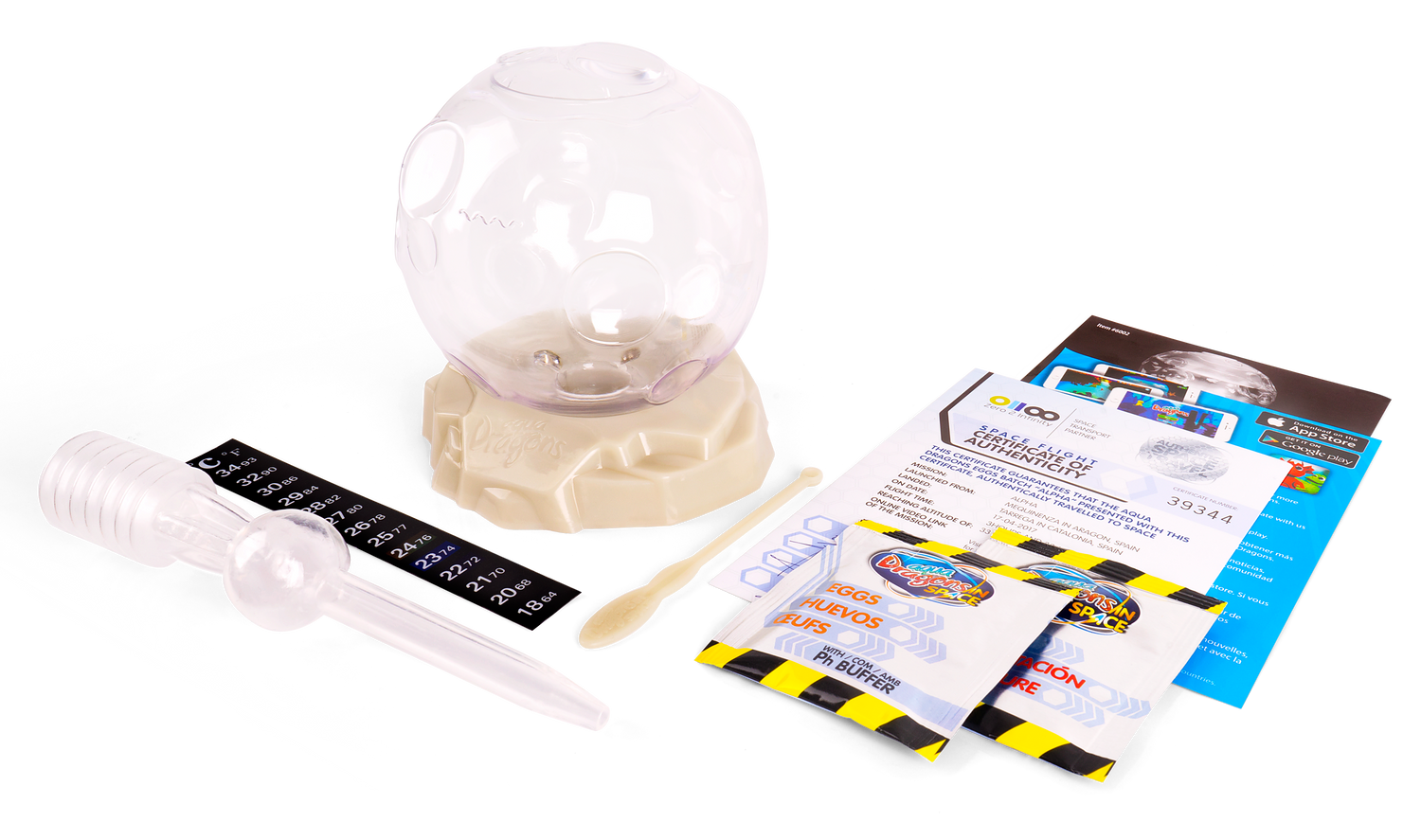 Vodné dráčiky z vesmíru! Najúžasnejšie na tejto sade je, že vajíčka v tomto balení boli na skutočnej vesmírnej misii! Tieto vajíčka cestovali až za stratosféru Zeme a boli následne bezpečne vrátené späť na Zem. Vďaka priloženému certifikátu pravosti (v angličtine) máte zaručené, že vaše Vodné dráčiky sú prvými domácimi zvieratkami, ktoré boli vo vesmíre!